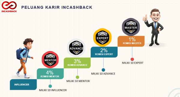 Setiap level di INCASHBACK memberikan hak yang berbeda dalam mengakses cashback tim dan komisi afiliasi. Semakin tinggi level Anda, semakin besar persentase passive income dari belanja jaringan.