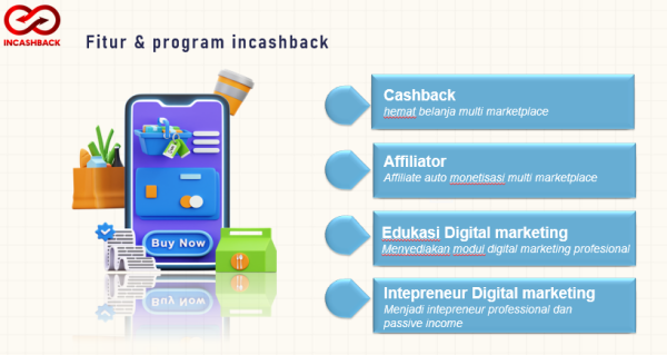 - Komunitas Wirausaha: INCASHBACK membangun komunitas wirausaha yang solid, saling mendukung untuk mencapai kesuksesan finansial bersama di bawah tagline “Belanja dapat duit!”