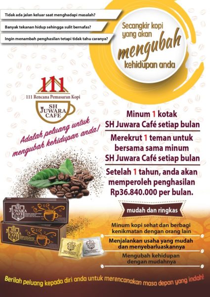 KOPI JUWARA (SH Juwara Cafe) bukan sekadar kopi instan biasa, melainkan super-coffee berbasis Jamur Lingzhi/Ganoderma yang didukung oleh Shuang Hor Group, pionir bioteknologi dengan pengalaman 35 tahun. Inilah solusi usaha sampingan tanpa modal yang menjanjikan potensi income hingga 36 Juta Rupiah per Bulan.